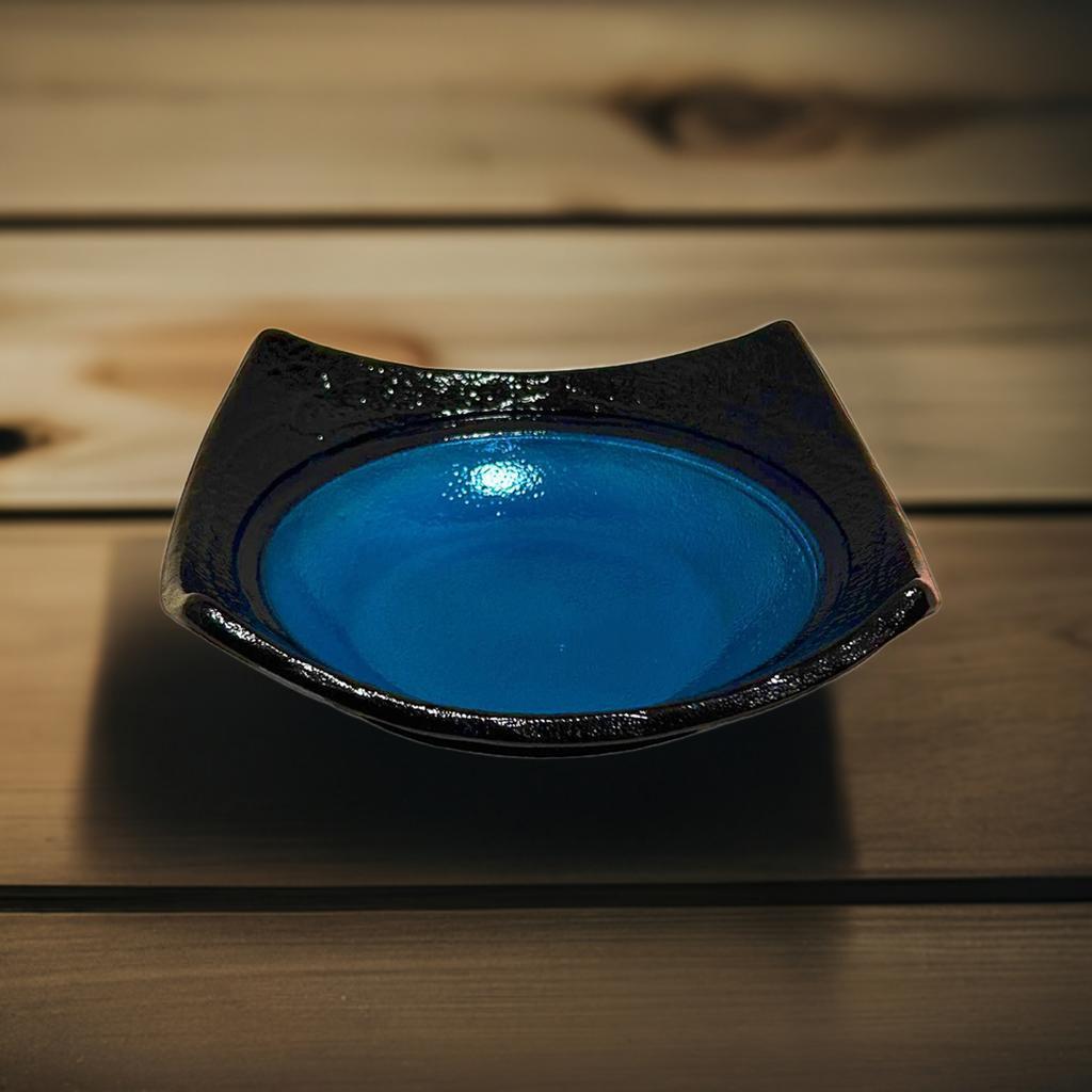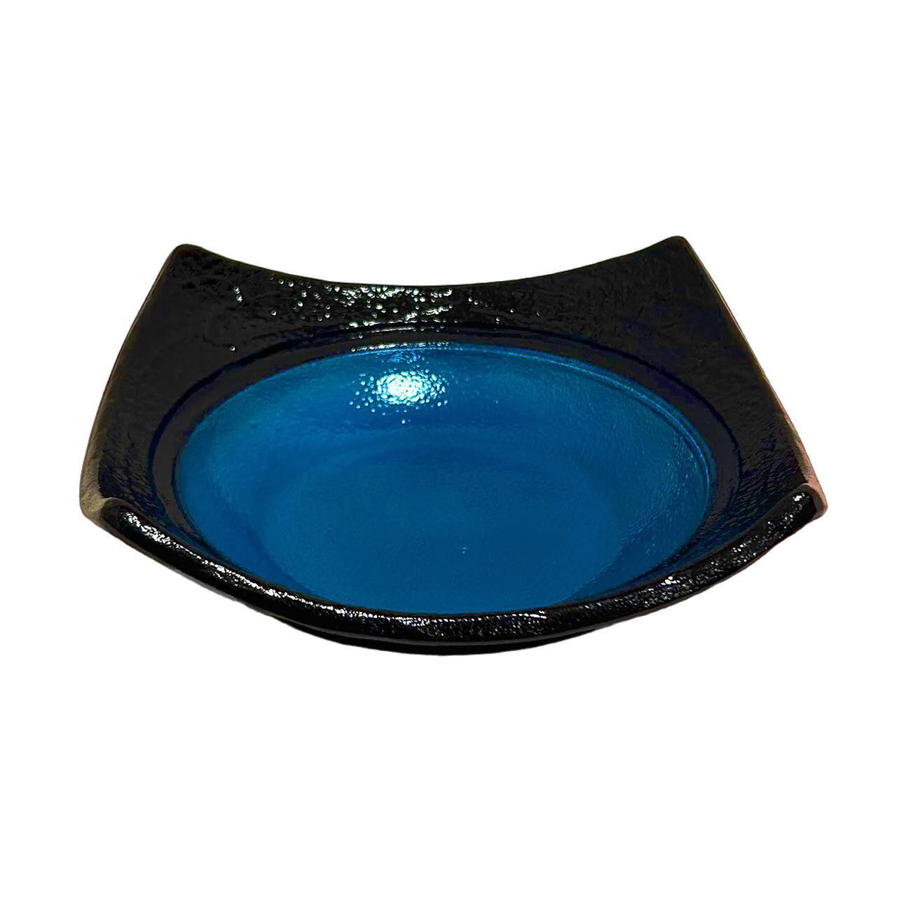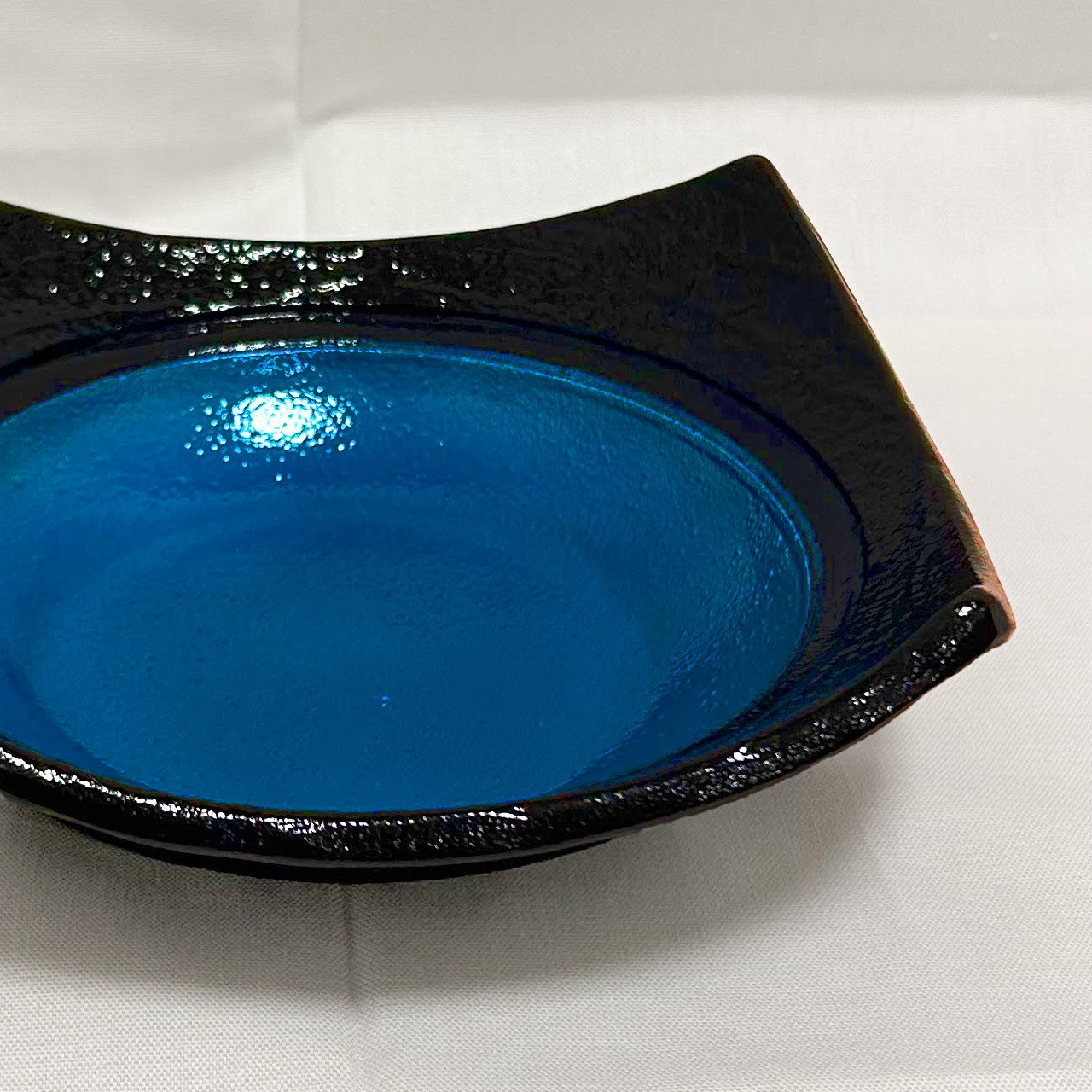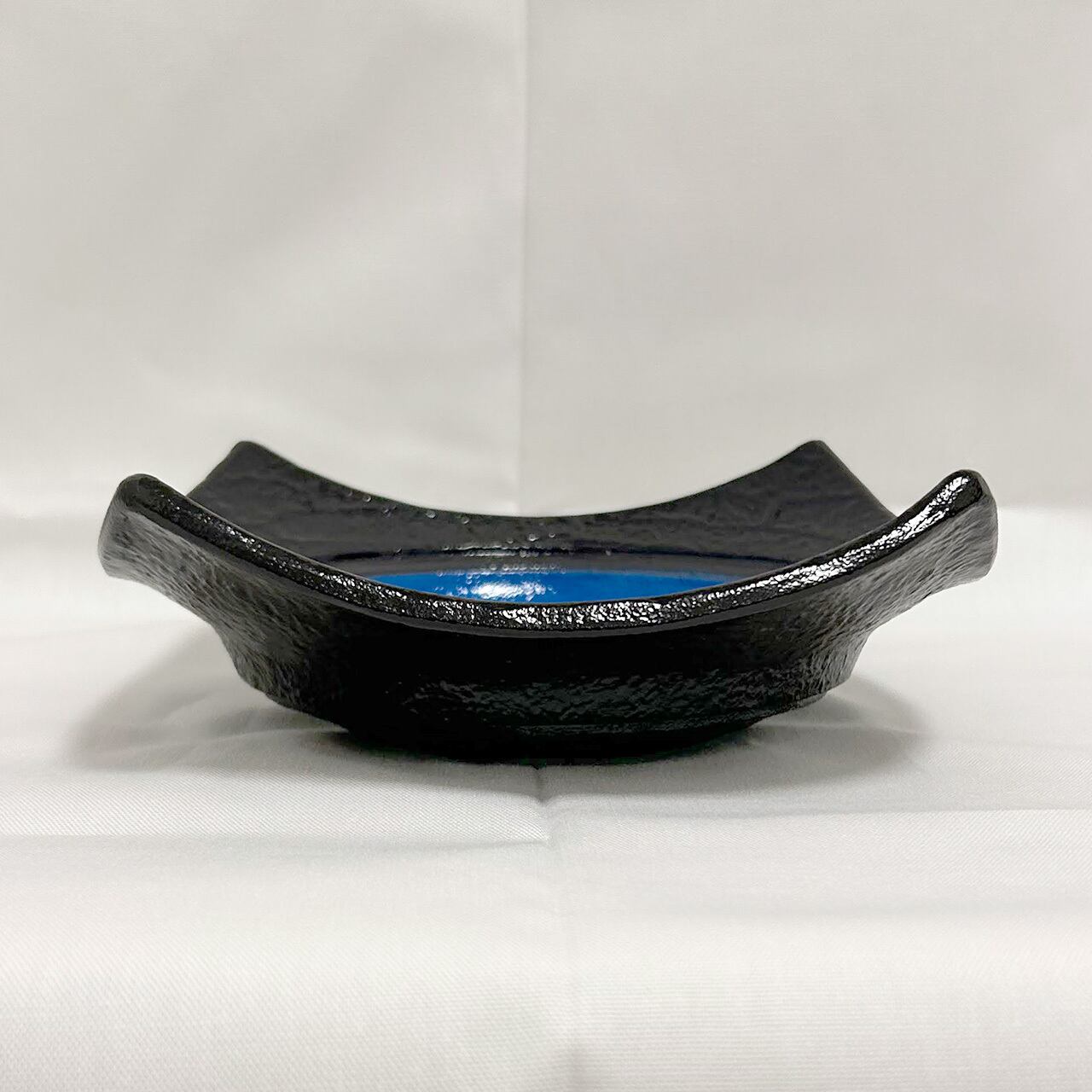 器も含めた盛り付けの腕が試されるかもしれませんが、黒を台地、青を海に見立てたとして、青い深皿部分に色々なお刺身を並べてみると、お料理を映えさせることが出来るのでは?と思います・